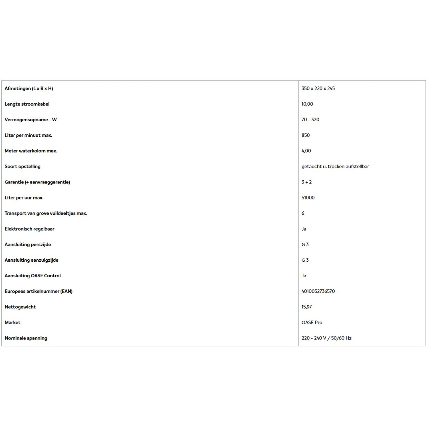Energiezuinige zwaartekrachtfilterpomp voor grote waterlichamen, zelfs met koi - perfect voor zwaartekrachtfiltersystemen. Dankzij het hydraulisch systeem met geoptimaliseerd debiet bereikt deze krachtpatser een uitstekende efficiëntie (51000 l/u debiet met een stroomverbruik van slechts 320 W max.). Met robuust pomphuis van gegoten roestvrij staal en grote voet voor een veilige plaatsing. De hoogwaardige SIC keramische rotoras en lagers staan voor betrouwbaarheid en duurzaamheid. De AquaMax Eco Titanium 51000 kan ondergedompeld en droog geïnstalleerd worden - ook ideaal in een pompkamer. Hij verpompt grof vuil tot 6 mm korrelgrootte en is dankzij de "Environmental Flow Control" (EFC by OASE) betrouwbaar beschermd tegen drooglopen en verstopping. De gepatenteerde "Seasonal Flow Control" (SFC) als intelligente en milieubewuste regeling van de waterhoeveelheid en opvoerhoogte maakt met behulp van optionele accessoires en met ingeschakelde SFC-functie extra energiebesparingen tot 30% mogelijk - precieze en betrouwbare techniek "Made in Germany" op een bijzonder hoog niveau. Tot 5 jaar garantie - 3 plus 2 jaar garantie.