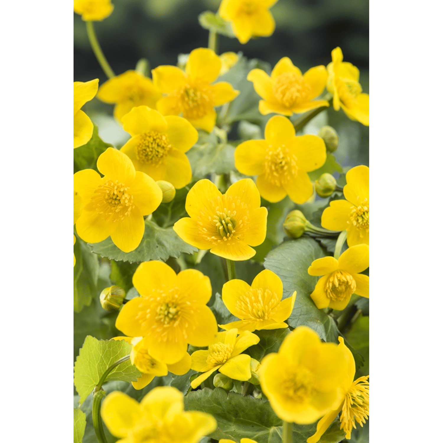 Caltha palustris, ook wel bekend als moerasbloem of gele waterroos, is een opvallende vijverplant die voorkomt in ondiepe moerassige gebieden, langs rivieroevers en in vennen. Deze plant behoort tot de familie Ranunculaceae en komt van nature voor in Europa, Azië en Noord-Amerika. Caltha palustris is zeer geliefd om zijn heldere, gele bloemen die in het vroege voorjaar verschijnen en de vijver een levendig uiterlijk geven.