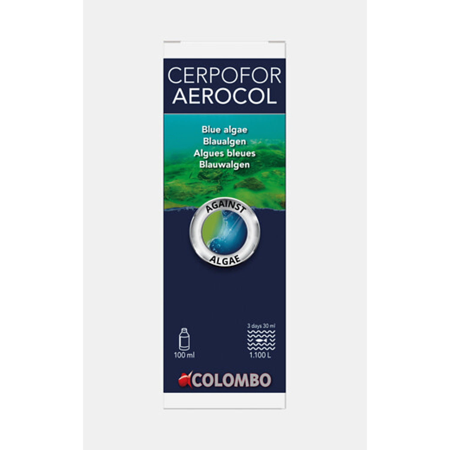 Colombo Aerocol is effectief tegen alle soorten blauwalgen in zoetwateraquaria. Effectieve werking tegen alle soorten blauwalgen. Schadelijk voor slakken en andere ongewervelden. Dosering: Aerocol dient op drie achtereenvolgende dagen gebruikt te worden. Om de 3 dagen 3 ml toevoegen per 100 liter water. Gebruik een doseerspuit voor precieze dosering.