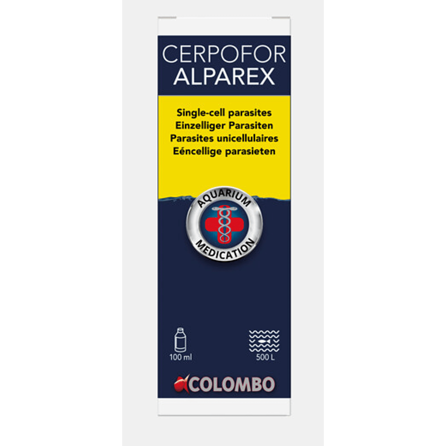 Colombo Alparex is werkzaam tegen onzichtbare parasieten welke een grauwsluier op de vissen veroorzaken, zoals Ichtyobodo, Chilodinella en Trichodina. Bovendien worden witte stip en schimmel effectief behandeld. Effectieve werking tegen een grote diversiteit aan onzichtbare parasieten, witte stip en schimmels. Op basis van 40 jaar ervaring en onderzoek biedt Colombo de meest effectieve remedies voor de behandeling van visziektes. Dosering: 2 ml per 10 liter water, 100 ml is voldoende voor 500 liter.