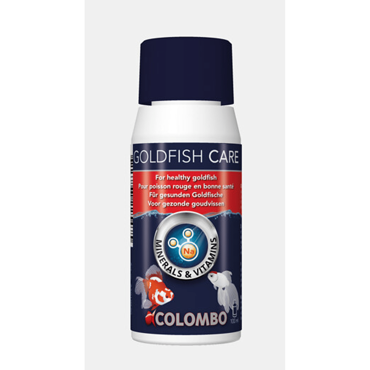 Gebruik Colombo Goldfish care voor gezonde goudvissen. Goldfish Care is een 100% natuurlijk zout wat verrijkt is met vitaminen, mineralen en verzorgende bestanddelen, het ideale zoutgehalte voor goudvissen is 0,1%. De zouten en toevoegingen in Goldfish Care zorgen voor een gezond milieu en en voorkomt visziekten. Volg voor optimale resultaten het Colombo onderhoud systeem en vervang Bacto Care door Goldfish Care. Colombo goldfish care kan het beste in warm water worden opgelost en vervolgens over het aquarium verdeeld worden. Inhoud 100 ml. Voldoende voor ruim 100 liter. Gebruik: Bij het vullen van het aquarium éénmalig 1 gram Goldfish care per liter aquariumwater toevoegen, daarna bij iedere waterverversing 1 gram per liter water toevoegen aan uitsluitend het verse water.