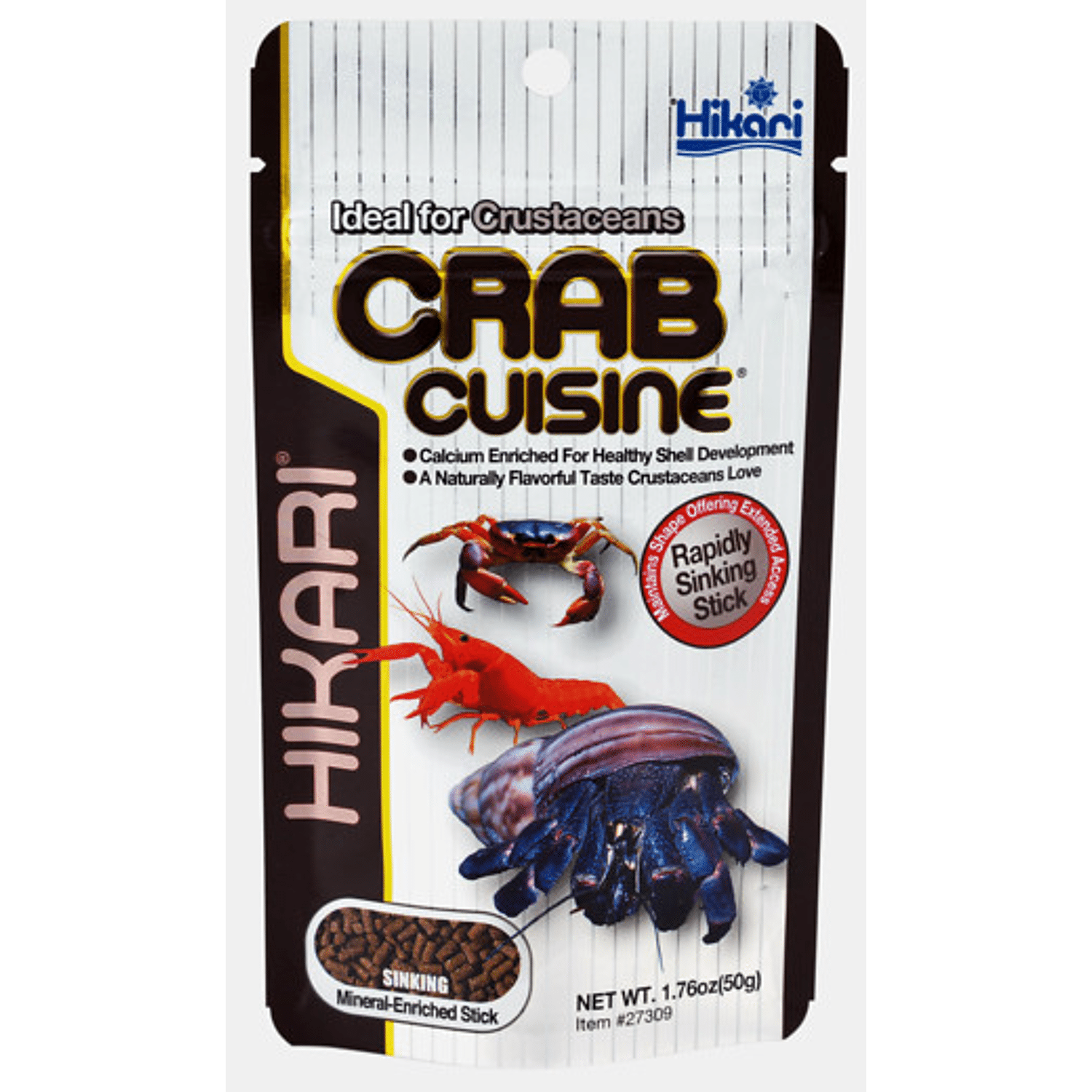 Hikari Crab Cuisine is ontwikkeld voor zee- en zoetwaterschaaldieren zoals, kreeften en krabben, bijvoorbeeld Heremietkreeften en Rivierkreeften. Bevat een hoog gehalte verrijkt calcium voor de ontwikkeling van de schaal als natuurlijke bescherming tegen roofdieren en ziektes. Snel zinkeld voer voor zee- en zoetwater schaaldieren, behoud zijn vorm en bevorderd de ontwikkeling van het rugpantser Harde mini stick die gemakkelijk naar de schuilplaats meegenomen kan worden zodat de schaaldieren in op hun gemak de sticks kunnen oppeuzelen. Daarom ook zeer geschikt voor Heremietkreeften. Voer zoveel als de schaaldieren binnen 12 uur opeten, nooit overvoeren, verwijder overtollig voer.