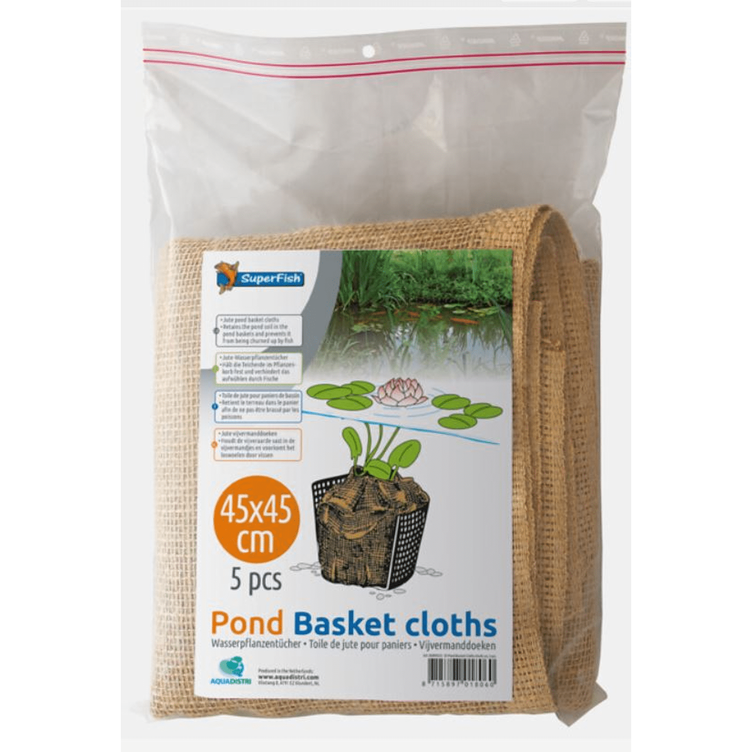 Jute doeken waarmee u voorkomt dat fijne vijveraarde vanuit de vijvermanden in het vijverwater kan lekken. • Verpakt per 5 stuks.• 45 x 45 cm.