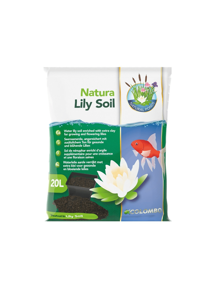 Colombo Natura Waterlelie Aarde bestaat uit natuurlijke grondstoffen met als belangrijkste toevoeging klei. Biedt de juiste voedingsstoffen die nodig zijn voor goed wortelende, prachtig bloeiende lelies met een mooie bladvorming. Inhoud: 20 liter. Waterlelie aarde verrijkt met extra klei voor gezonde en bloeiende lelies.