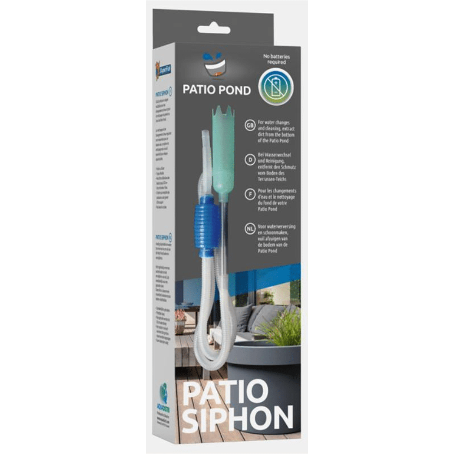 Met flexibele slang die gebruikt kan worden tot 50cm waterdiepte. Het rooster in de korf voorkomt dat grind en vissen worden opgezogen. Werkt zonder baterijen. Voor een gezonde Patio Pond ververst u makelijk met onze Siphon wekelijks 10% van het water en reinigt u het vuil van de bodem.