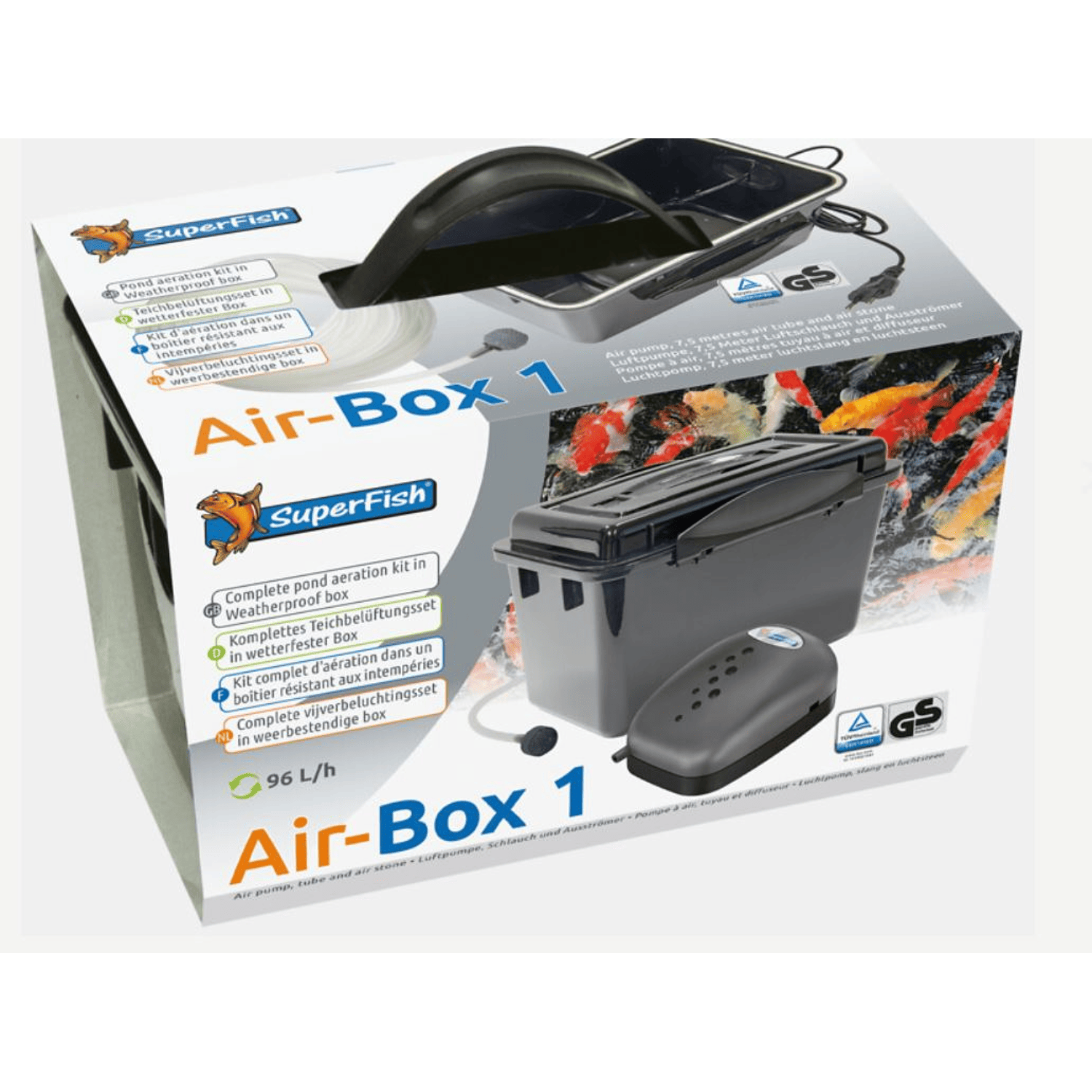 Complete beluchtingssets in een handige box, beschermt tegen regen- en spatwater. Zorgt voor verse zuurstof in het vijverwater. Houdt uw vijver gezond in de zomer en ijsvrij in de winter. Compleet met luchtslang en 1, 2 of 4 luchtstenen. Extra reserve membraan meegeleverd. Complete set geleverd met 7,5 meter luchtslang en 1 luchtsteen (ø 20 mm). Zorgt voor voldoende zuurstof in de vijver tijdens de warme maanden, en helpt de vijver ijsvrij te houden in de winter. Luchtpomp 96 L/h, verbruik 2W, 2 jaar garantie.