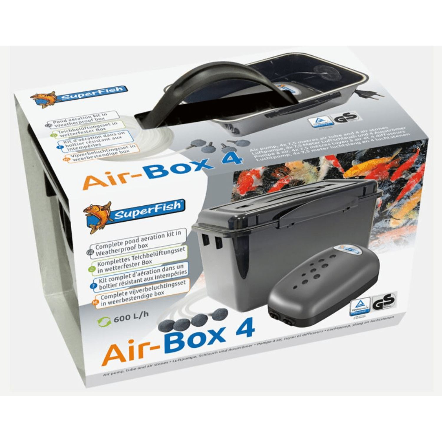 Complete beluchtingssets in een handige box, beschermt tegen regen- en spatwater. Zorgt voor verse zuurstof in het vijverwater. Houdt uw vijver gezond in de zomer en ijsvrij in de winter. Compleet met luchtslang en 1, 2 of 4 luchtstenen. Extra reserve membraan meegeleverd. Complete set geleverd met 4 x 7,5 meter luchtslang en 4 luchtstenen (ø 20 mm). Zorgt voor voldoende zuurstof in de vijver tijdens de warme maanden, en helpt de vijver ijsvrij te houden in de winter. Luchtpomp 600 L/h, verbruik 8W, 2 jaar garantie.