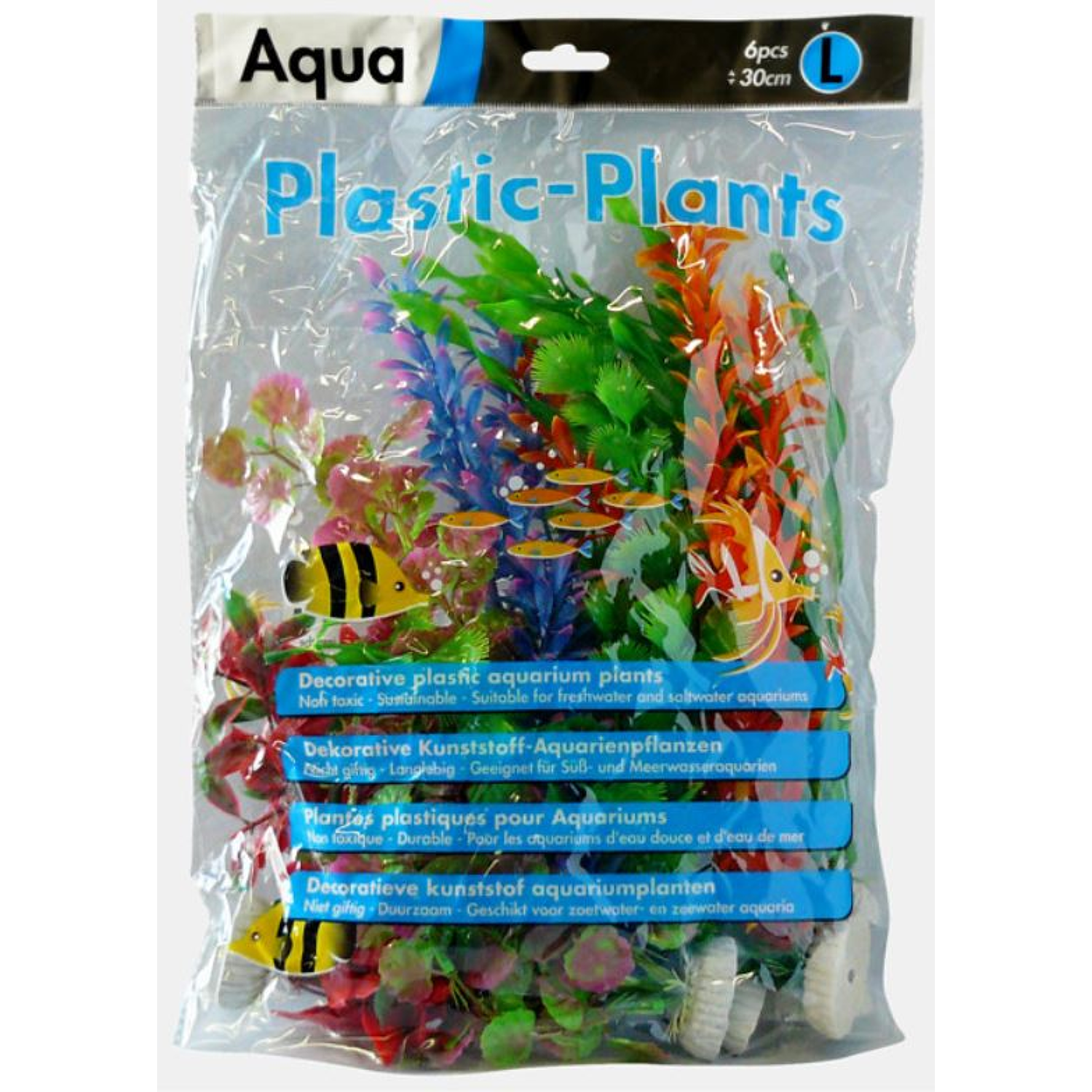Deze set van 6 vrolijke gekleurde plastic planten fleuren elk aquarium op! Veilig voor uw vissen en het aquarium ecosysteem. Voor het plaatsen in het aquarium eerst grondig afspoelen met kraanwater. Geschikt voor zoetwateraquaria, Nooit reinigen met chemicaliën, dit is schadelijk voor uw vissen, alleen schoonmaken met vers kraanwater. Hoogte 30 cm