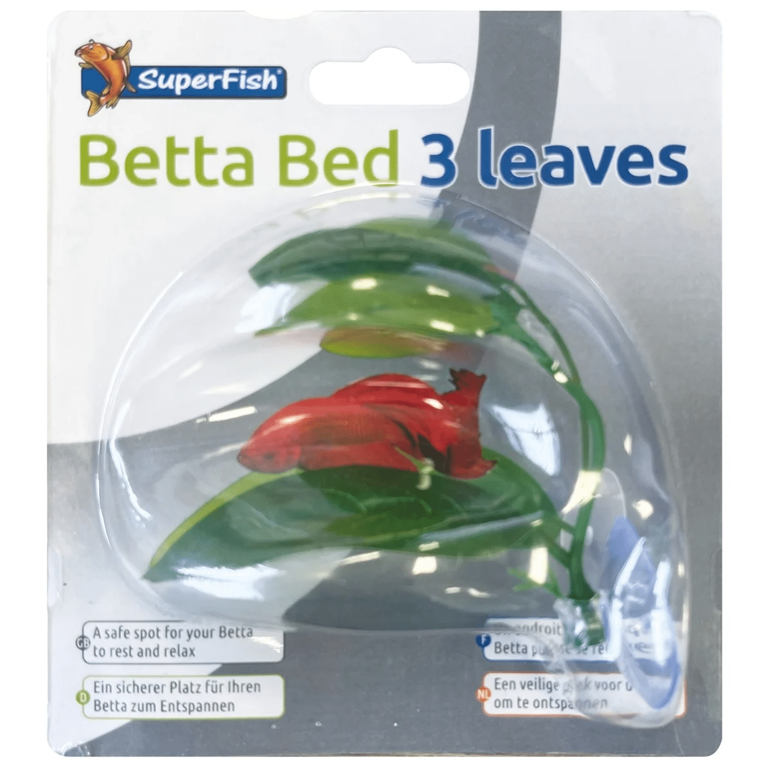 Met de Superfish Betta bed heeft uw Betta een veilige plek om te ontspannen. Plaats het Betta Bed net onder het wateroppervlak (2 cm), zodat de Betta gemakkelijk naar lucht kan happen. Plaats het Betta Bed niet in de buurt van de filteruitlaat of verwarmer. 100% veilig voor uw vissen en het ecosysteem. Voor het plaatsen in het aquarium eerst grondig afspoelen met kraanwater. Regelmatig reinigen. Nooit schoonmaken met chemicaliën, dat is schadelijk voor uw vissen, alleen reinigen met vers kraanwater. Speciaal voor Betta vissen, Met behulp van een zuignap plaatst u het bed makkelijk aan een ruit. Afmeting 13,5x3,5x15cm