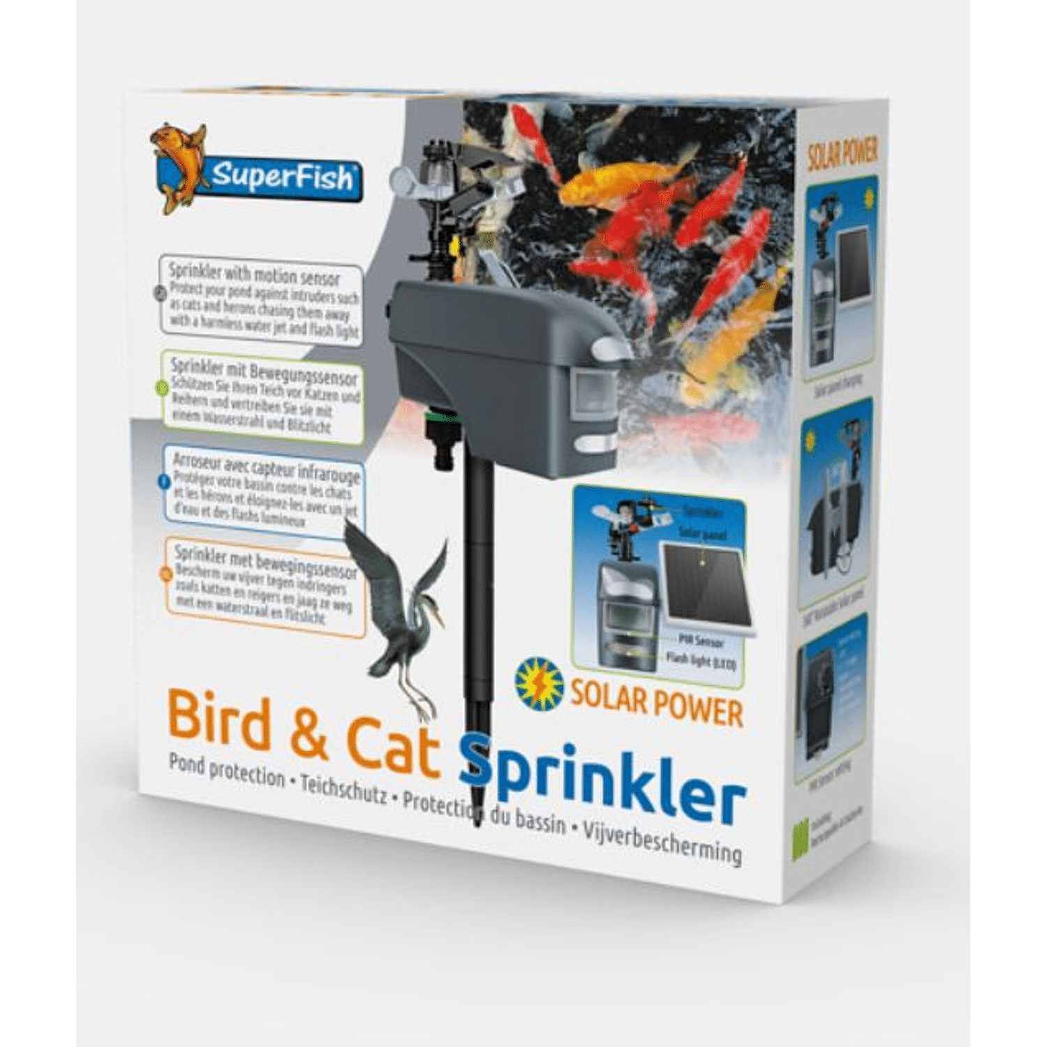Sprinkler met bewegingssensor die ongewenste bezoekers detecteert en verjaagt met een krachtige waterstraal en lichtflitsen (LED). Eenvoudige installatie, laad de batterijen op en sluit de Sprinkler aan op een tuinslang en deze is klaar voor gebruik. Milieuvriendelijk, werkt op zonne-energie Inclusief zonnepaneel en 3 x AA oplaadbare batterijen Batterijen kunnen met USB kabel worden opgeladen Infrarood bewegingssensor met instelbaar bereik tot 10 meter en 110˚ Sprinkler waterstraal instelbaar tot maximaal 8 meter ver en 16 meter breed Universele slangtule voor eenvoudige tuinslangaansluiting Spat waterdicht(IP44) met 1 jaar garantie en gebruiksaanwijzing Milieuvriendelijk, werkt op zonne-energie, geleverd inclusief zonnepaneel en 3 x AA oplaadbare batterijen (niet meegeleverd), de batterijen kunnen ook met een USB-kabel worden opgeladen. Eenvoudige installatie, laad de batterijen op en sluit de Sprinkler aan op een tuinslang en deze is klaar voor gebruik. De Infrarood bewegingsmelder heeft een instelbaar bereik tot circa 10 meter en een hoek van 110°, de Sprinkler waterstraal is instelbaar tot maximaal 8 meter ver en 16 meter breed. Spat waterdicht (IP44) geleverd met universele slangtule voor eenvoudige aansluiting op de tuinslang, 1 jaar garantie.
