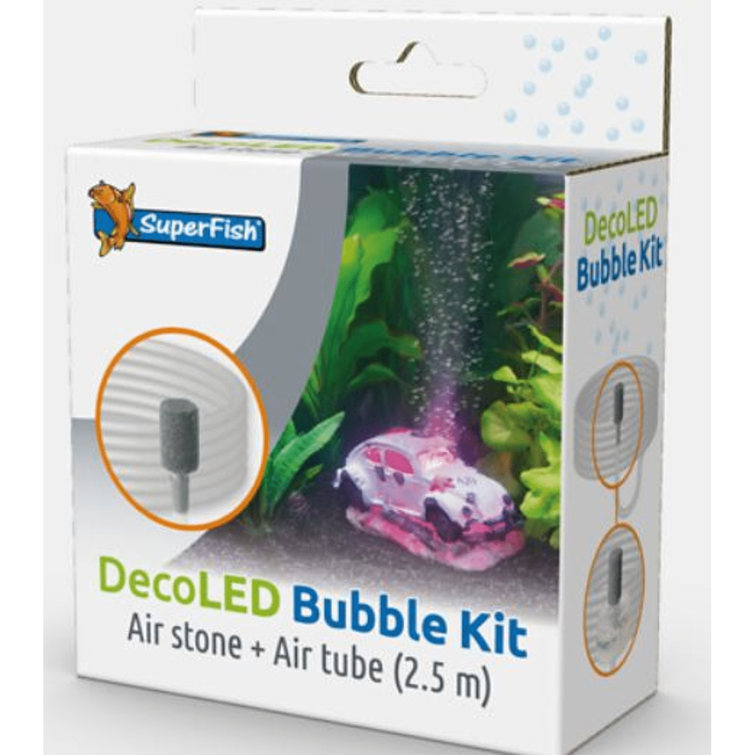 Dit luchtsteentje met luchtslang past perfect onderin uw Deco Led Ornament, u sluit de luchtslang aan op een luchtpompje en decoratieve en nuttige luchtbellen stromen uit uw Deco Led ornament het aquarium in. Inclusief luchtslang, de luchtbellen zorgen voor extra zuurstof in het aquariumwater Aan te sluiten op een luchtpompje (niet meegeleverd) wij adviseren de Superfish Air Flow mini of Air Flow 1