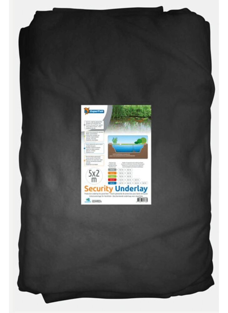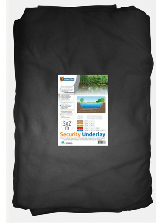 Beschermende onderlaag voor vijverfolie Geotextiel. Beschermt de vijverfolie tegen scherpe voorwerpen (stenen, wortels). Stabiliseert de bodem. Geotextiel, plaats deze onderlaag tussen de bodem en de vijverfolie. Afmeting 5x2 meter, handig verpakt en te vervoeren.