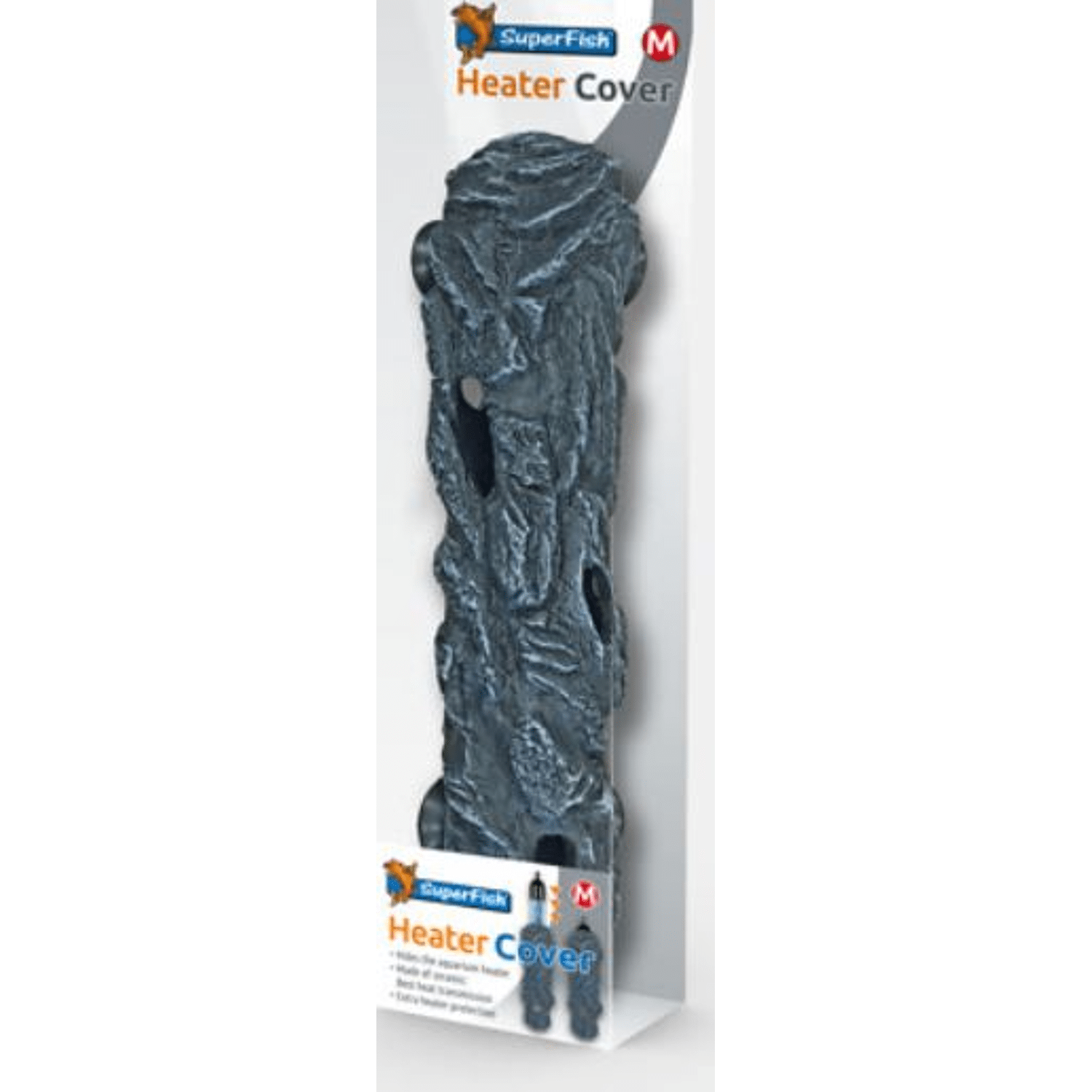 Met de SuperFish Heater Cover verbergt u eenvoudig een aquariumverwarmer in het aquarium. Bevestig de Heater Cover in de hoek van het aquarium en plaats een heater onzichtbaar in de rots. De Heater Cover is gemaakt uit keramiek, wat zorgt voor de beste warmteoverdracht en biedt extra bescherming. Maat M is geschikt voor heaters tot 29 cm zoals de Superfish Eco en Pro Heaters van 50, 75 en 100 Watt en andere merken verwarmers tot 29 cm lang.