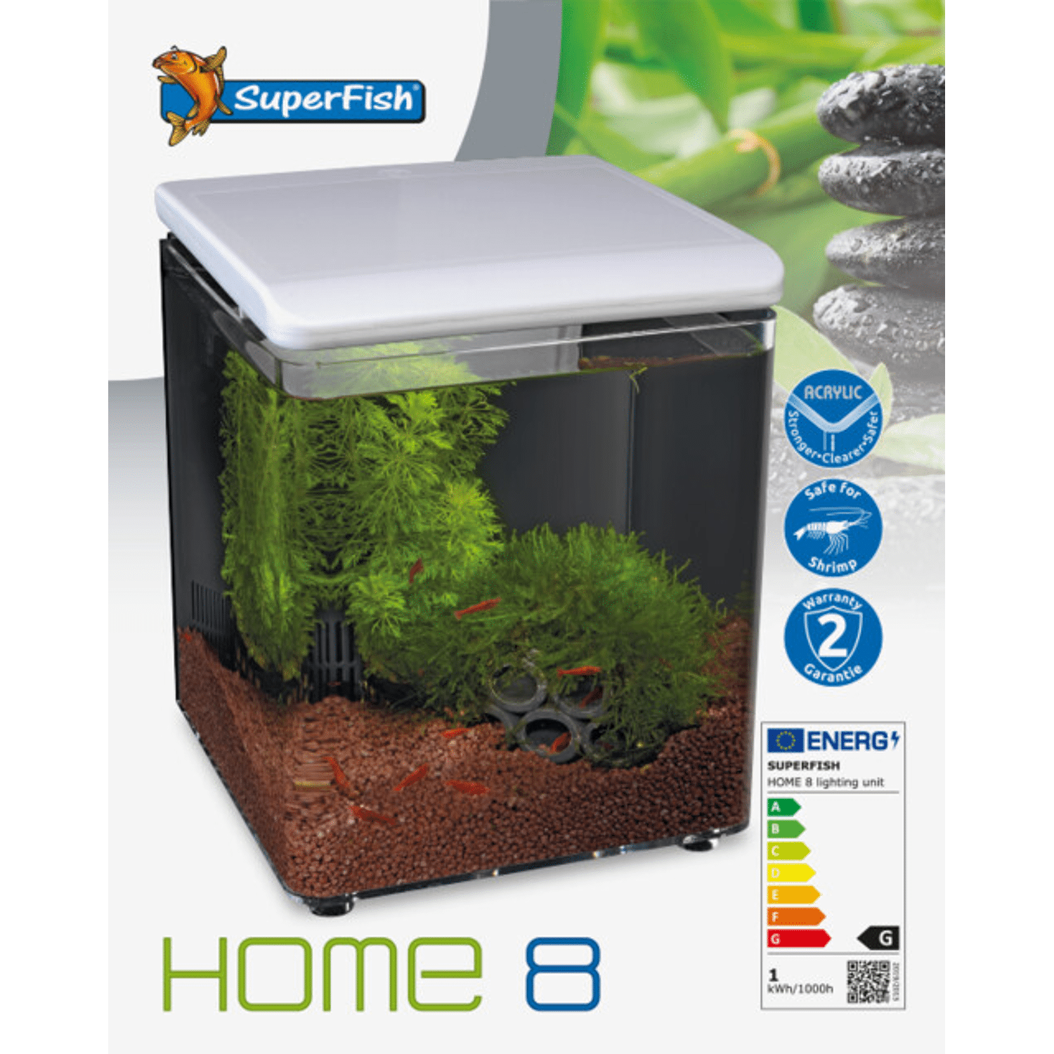 De Home 8 is een plug-and-play mini aquarium en een blikvanger in elke ruimte, van woonkamer of keuken tot in het kantoor. De Home 8 word compleet geleverd met verlichting, ingebouwd filter en pomp en is gemakkelijk te installeren en te onderhouden. Plug en Play mini aquarium, voorzien van een veilige LED-verlichting Het filter met de actieve kool cartridge zorgt voor schoon en gezond water en is eenvoudig te vervangen. Vervangcartridges zijn verkrijgbaar bij uw dealer. Inhoud 8 liter, geschikt voor Betta of garnalen, in het filter is ruimte voor optionele verwarmer. verkrijgbaar in de kleuren wit en zwart,