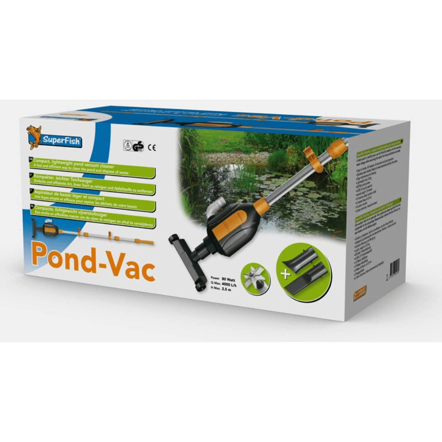 Met de compacte en lichtgewicht Pond-Vac vijverstofzuiger kunt u wekelijks het vijverwater verversen, terwijl u het vuil van de bodem en wanden opzuigt. Roestvast stalen schoepen om opgezogen vuildeeltjes te verkleinen. 80 Watt pompvermogen. 4.000 L/h pompcapaciteit. 1,8 meter steellengte. 5 meter slang, Ø 32 mm. 3 zuigmonden. Complete set, 1,8 meter steellengte, 5 meter slang van 32 mm en 3 zuigmonden. Roestvast stalen schoepen om opgezogen vuildeeltjes te verkleinen. Pompcapaciteit 4.000 L/h, 80 watt vermogen.