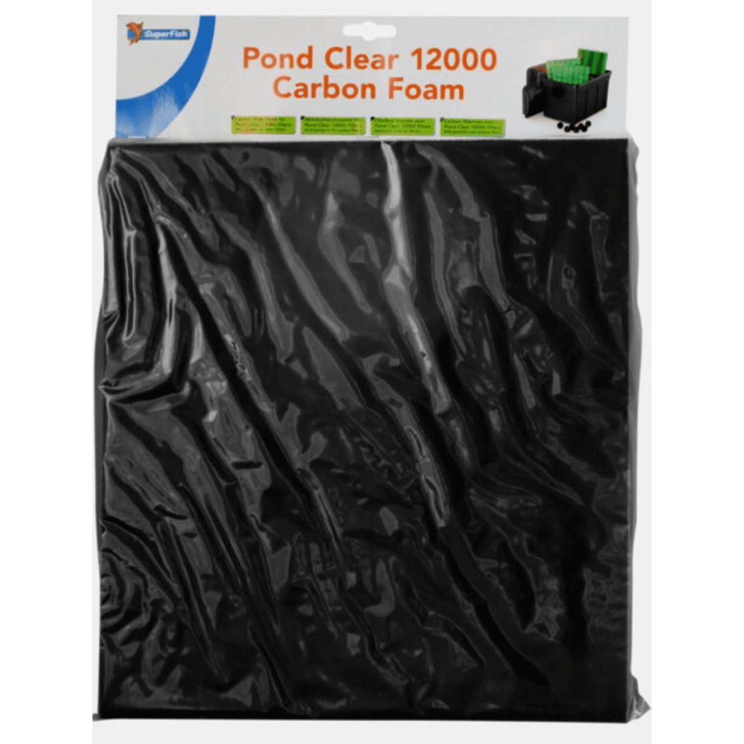 Filterschuimmat geïmpregneerd met actief kool. Actieve Kool verwijderd giftige- en kleurstoffen uit het vijverwater, vervang de spons elke 2-3 maanden dan is de spons verzadigd. Geschikt voor SuperFish PondClear 12,000 verwijder de actieve koolmat voor het toedienen van medicijnen aan de vijver.
