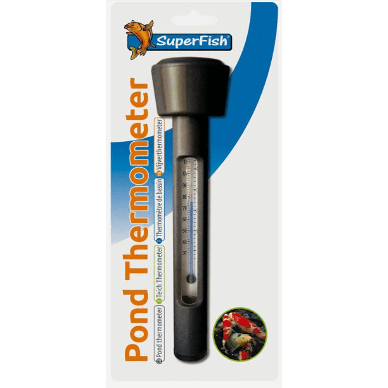 Het is noodzakelijk om regelmatig de temperatuur van uw vijvewater te meten,. Hoe vaak en hoeveel u uw vissen moet voeren hangt hier namelijk vanaf. Met een SuperFish vijverthermometer meet u eenvoudig en exact de watertemperatuur. Het is belangrijk om regelmatig de temperatuur van uw vijverwater te meten, zo weet u hoe vaak en hoeveel u uw vissen moet voeren!