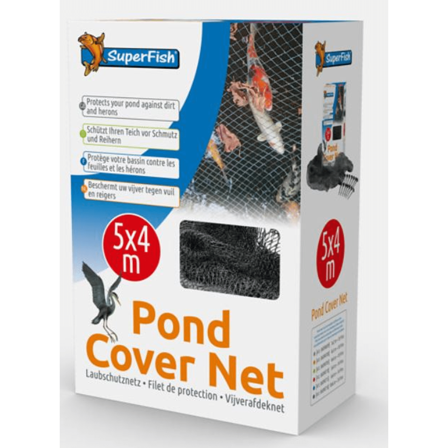 Een afdeknet voorkomt dat bladeren of ander vuil in de vijver waait en het beschermt tevens uw vissen tegen reigers en katten. Inclusief grondpennen. Sterk zwart net, geleverd inclusief 14 grondpennen, extra grondpinnen zijn verkrijgbaar bij uw dealer. Ook ideaal om de vijver te beschermen tegen de reiger.