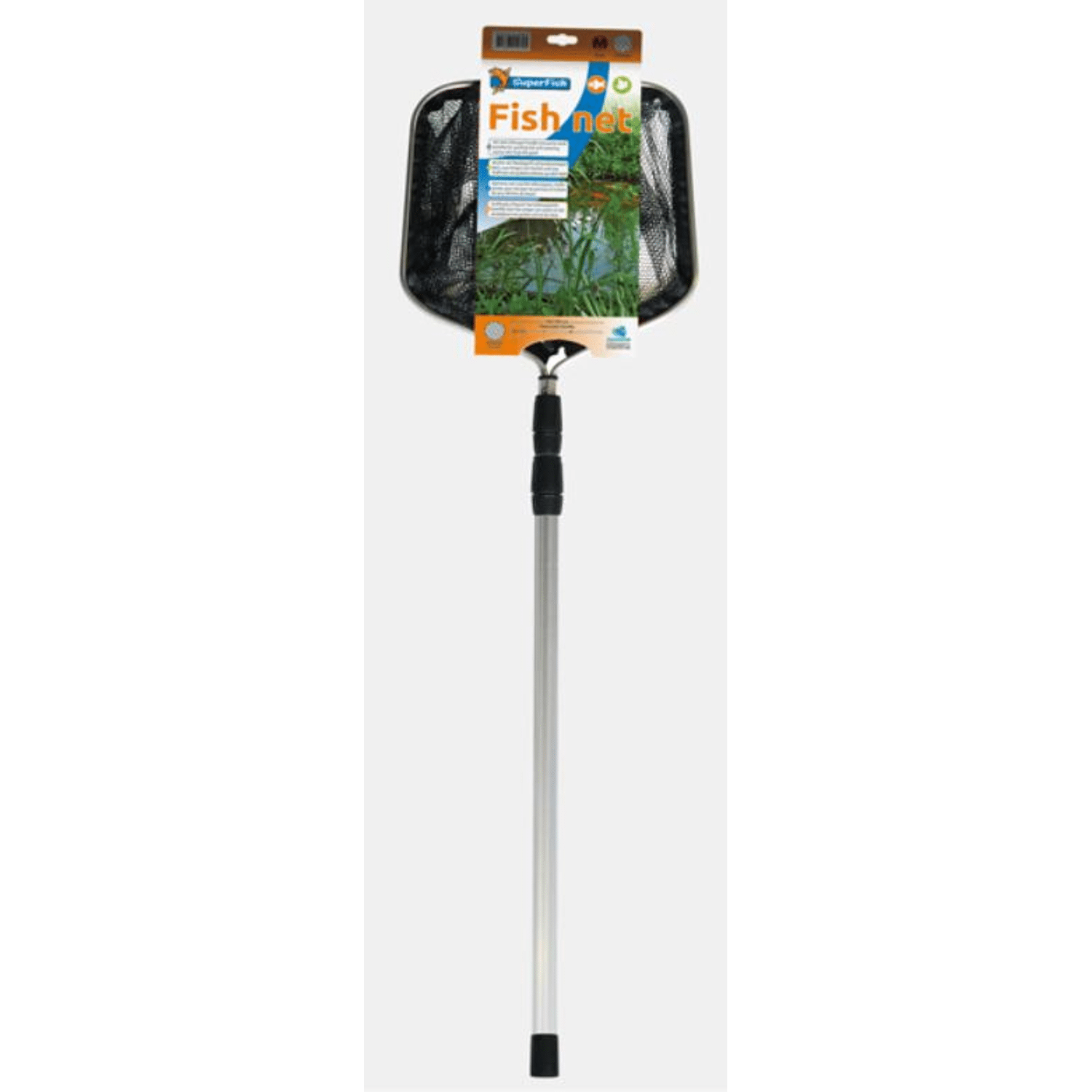 Sterk aluminium vijverschepnet met een telescopische aluminium steel, leverbaar met fijn- en grofmazig net. Zwart grofmazig net. Grofmazige netten zijn geschikt voor het vangen van vissen en grover vuil. Met de fijnmazige netten verwijdert u fijn vuil en algen uit de vijver. Afmeting net 30X30CM, telescopische steel, lengte 1-18CM.